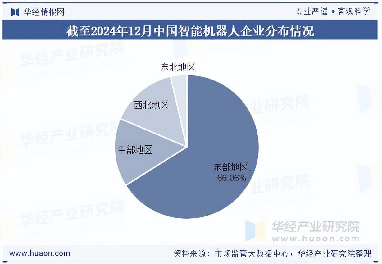据市场监管大数据核心数据,截至2024年12月底,全国智能机械人财产企业数量已达45。17万家。从地区分布上,我国智能机械人财产的地区分布呈现出较着的梯度特征。东部地域凭仗区位、科研实力及财产链配套劣势,吸引了高达66。06%的企业集聚,构成了财产“黄金地带”,中部和西北地域的企业数量分布相对平衡,别离占比15。33%和14。97%。而东北地域企业分布较少,占比正在5%以下。这种区域分布款式,既反映了我国区域经济成长的阶段性差别,也为将来财产的平衡结构和协同成长供给了广漠的空间。