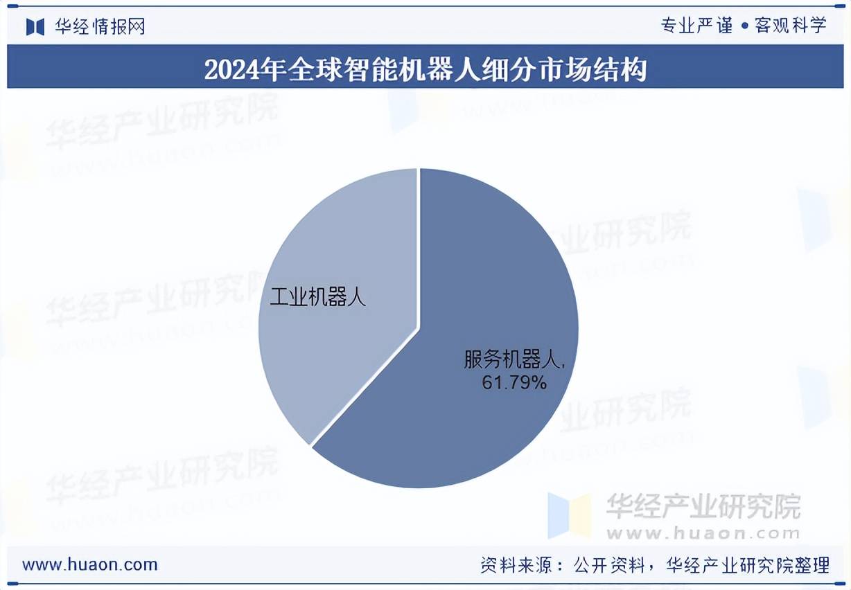 按用处,智能机械人次要分为工业机械人和办事机械人。工业机械人是指一种能够从动节制、具有三轴或更多轴的编程能力,凡是用于工业使用场景。办事机械人是为人类供给各类办事的机械人,包罗家务办事、医疗护理、教育文娱等方面,2024年全球办事机械人正在智能机械人市场中占领从导地位,占比达61。79%。
