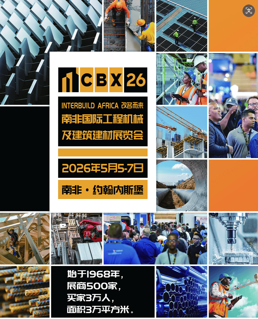 2026年南非国际工程机械及建建建材博览会(CBX Expo)博览会将于5月5日至7日正在南非约翰内斯堡会展核心举办,这是南非建建行业首屈一指的专业展会,由南非专业展览公司(Specialised Exhibitions (Pty) Limited)承办,旨正在为参展商取不雅众供给高价值行业洞见及商务人脉拓展机遇。