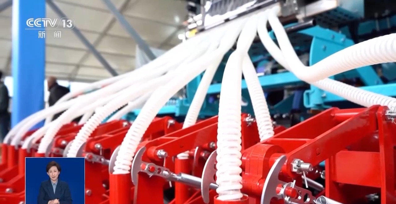 正在农高会的现场还有一个新型的小麦播种机,它就像一个庞大的八爪鱼,小麦的播种是采用气吹体例,很是精准。别的,能够一边整地、一边施肥、一边播种。
