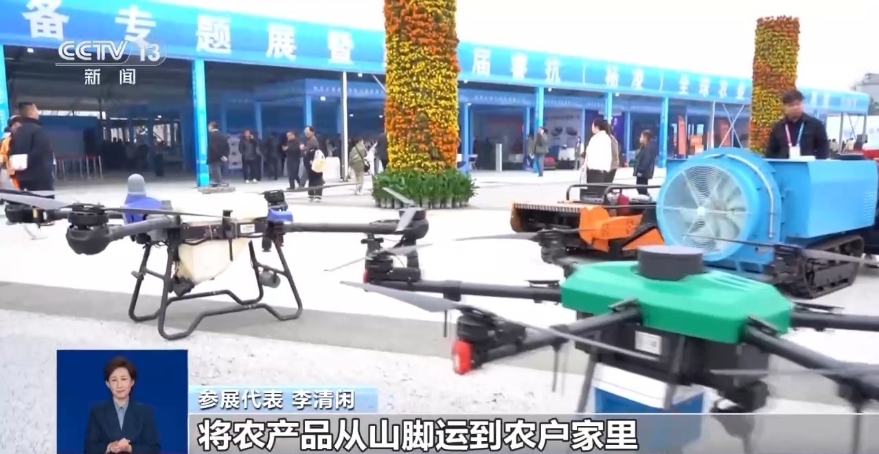 参展代表 李安逸:农业无人机将玉米、苹果从山头运到山脚公上,然后通过接力,物流无人机将农产物从山脚运到农户家里,打通最初一公里。暖心组合农机“手拉手”协做,成了雨天抢收的“神队友”。而针对雨后地步泥泞、轮式机械下地难的痛点,本年展出的田间功课植保机、收割机和耕种机都拆上了履带底盘。